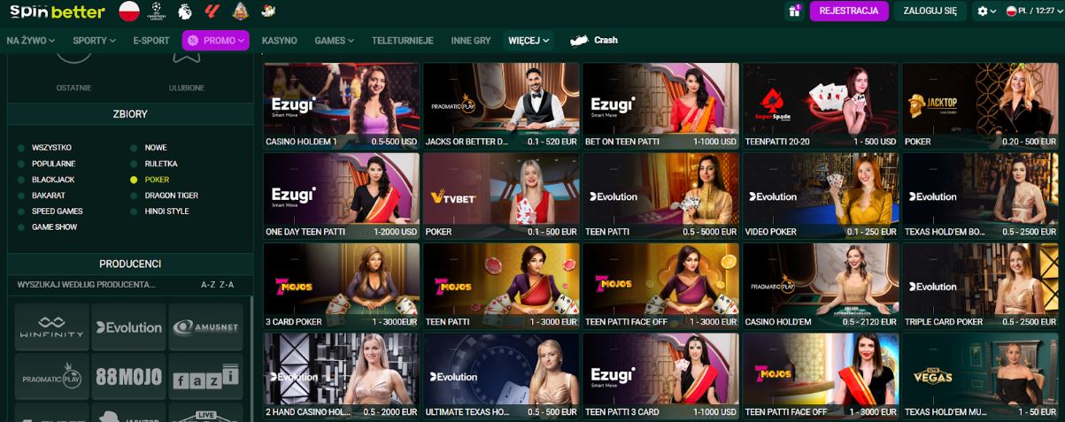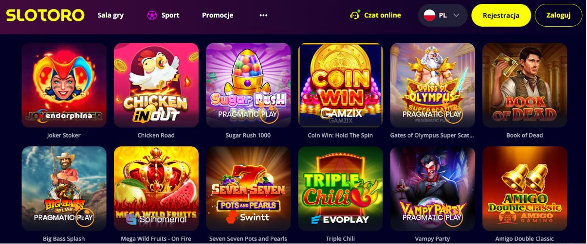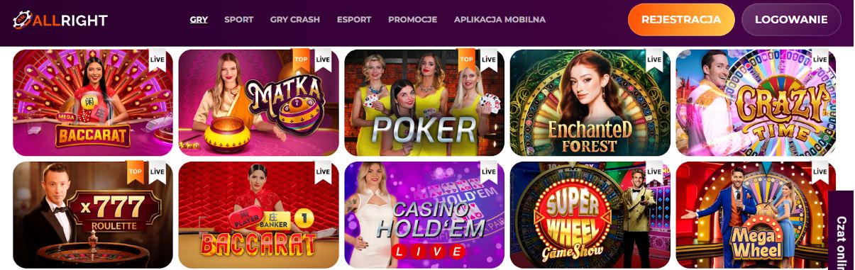 Nowoczesna kategoria gier. Zasada jest prosta: obstawiasz zakład, mnożnik rośnie, a Ty musisz wypłacić środki, zanim gra się zakończy. Stawki zaczynają się od kilkudziesięciu groszy, a rozgrywka jest bardzo dynamiczna. Do popularnych tytułów należą: Aviator, JetX, Spaceman, Crash X.