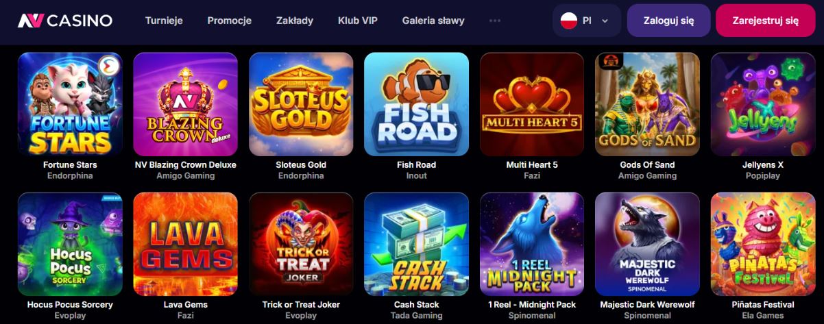 Kasyno wyróżnia się cotygodniowymi turniejami z pulą nagród sięgającą 25 000 zł i przejrzystym programem lojalnościowym opartym na statusach.